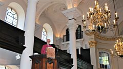 Music is provided by the Daily Service Singers, the St Martin's Voices Fellows and Southbank Symphonia as they perform Haydn's dramatic and majestic Paukenmesse. Hundreds of Radio 4 listeners will be joined in the church by on-air talent and broadcasters who will lead various parts of the service.