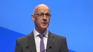 John Swinney MSP making a speech at the SNP conference in Glasgow, from Sunday 8 October.