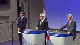 Joint news conference held in Brussels by David Davis and Michel Barnier.