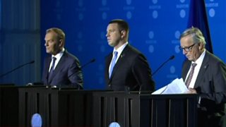 European Union news conference with Jean-Claude Juncker and Donald Tusk.