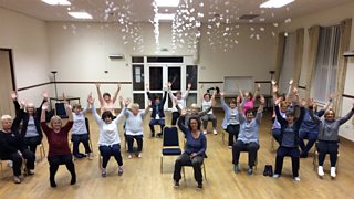 3/3Nia Lloyd Jones yn trafod gweithgareddau Merched y Wawr gyda rhai o aelodau'r mudiad.