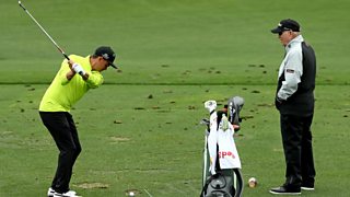 Watch BBC Sport coverage from the practice range at the Masters 2018.
