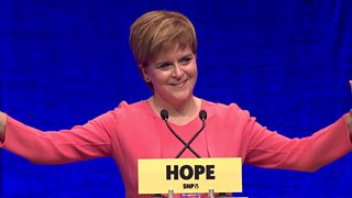 Recorded coverage of the SNP conference speech by Nicola Sturgeon, from Tuesday 9 October.