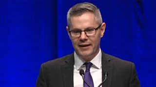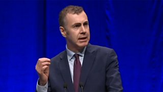 Derek Mackay making a speech at the Scottish National Party conference, from 9 October.