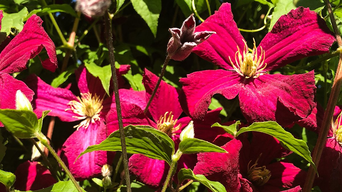 Monty catches up with maintaining his pond and gives advice on planting water lilies. He also gives tips on how to grow and plant herbaceous clematis as well as harvesting potatoes.