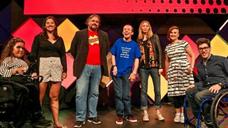 Blind comedian Chris McCausland hosts a show that includes Tom who has a brain injury.