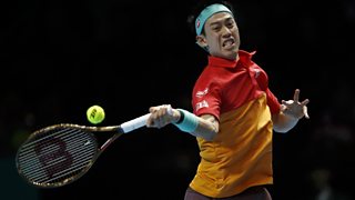 Coverage of Roger Federer v Kei Nishikori in the opening day of the season finale.