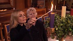 Katherine returns home to Neath and visits her Mum, Susan. They reminisce about Katherine’s late father, who died suddenly from cancer when she was only 15. In their home church of St David’s Neath, they light two candles for the second Sunday of Advent. Katherine reflects on how anger with God for the loss of her Dad caused her to lose her faith. But after Susan had a special moment of a strong Godly presence in the church, Katherine was impacted by it thousands of miles away in Australia, and it brought her back to believing.
