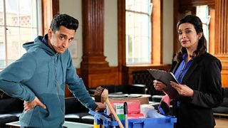 1/5When cleaner Carl masquerades as a lecturer, he discovers a newfound confidence.