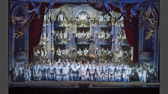 ACT IVMefistofele has transported Faust, who stills quests for the perfection of art and beauty, to ancient Greece. Helen of Troy and her companion Pantalis serenade the full moon. In the distance, Faust is heard calling for Helen. As the two women leave, Faust enters, enchanted with his surroundings. Mefistofele, however, feels uncomfortably out of place. Helen now reappears, praised by a chorus who pay her homage. She is obsessed by a nightmare vision of the destruction of Troy. She receives Faust, who declares his love for her, the embodiment of pure and ideal beauty. They pledge their love and contemplate life together in peaceful Arcadia.