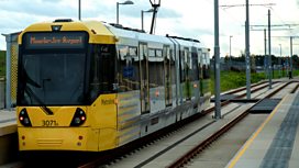 Manchester commuters push tram
