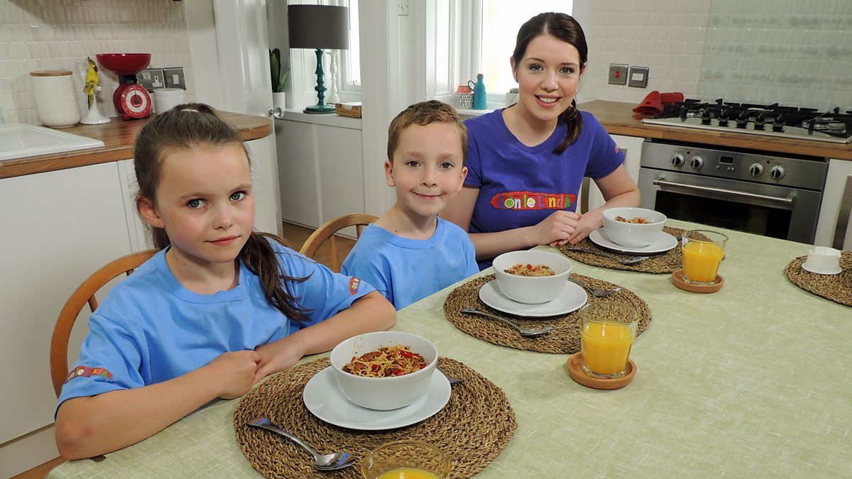 Linda Macleod and friends cook a number of tasty dishes. In this episode, Linda is joined by Hannah and Matthew to make sticky noodles with chicken. But before they start, they have to ensure they have all the ingredients and, if not, they make a list and go shopping.
