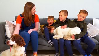 8/15Eilidh Cormack is joined by Findlay and Lachlan, and their pet dogs Maisie and Lola.