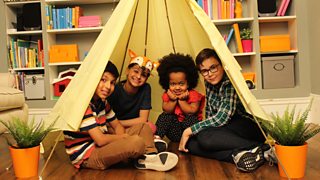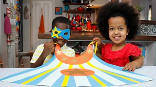 Cara and India make a wily fox mask to play a game of grandma's footsteps.