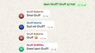 Creu grŵp enfawr o bobl o'r enw Gruff ar whatsapp.