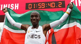 The Kenyan athlete managed 26.2 miles in 1 hour, 59 minutes and 40 seconds.