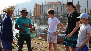 The boys' team and presenter Karim are in Guatemala, learning about the Mayan game pitz.