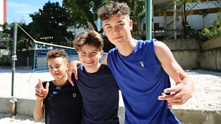 The boys' team and Karim are in Brazil to learn footvolley and martial art capoeira.