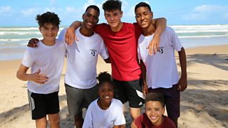 The boys' team and presenter Karim are in a Brazilian favela to learn capoeira.