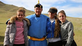 The girls’ team and presenter Camille are in Mongolia learning about the skills of nomads.