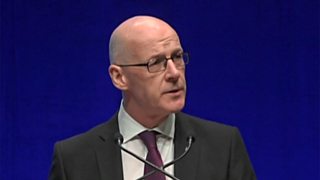 Recorded coverage of the speech by SNP leader Nicola Sturgeon on Tuesday 15 October.