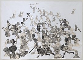 This week we begin with American writer and commentator Roxane Gay, author of The New York Times best-selling essay collection Bad Feminist. She chooses a work by Kara Walker, best known for creating black-and-white silhouette works that invoke themes of African American racial identity. Roxane has selected Walker's massive 11-by-18-foot collage “Christ’s Entry into Journalism” from 2017. Riffing off “Christ’s Entry into Jerusalem,” the piece is covered with ink drawings depicting figures real and imagined, past and present, from James Brown to Martin Luther King, Jr. and Donald Trump.