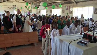 Dà chultar a' tighinn còmhla airson beannachadh pòsaidh Gemma is Shaun