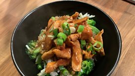 Sticky Ginger Chicken with Broccoli and Rice