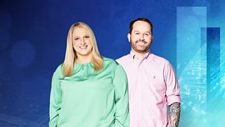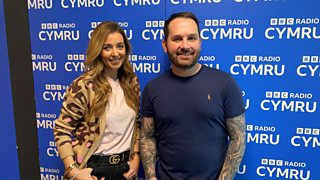 Shelley Rees a Rhydian Bowen Phillips sy'n clywed am "Y Cynta a'r Olaf" gan Heledd Cynwal.