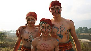 The boys' team and presenter Karim are in Guatemala learning about the Mayan game pitz.