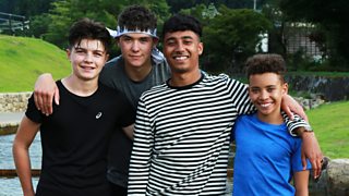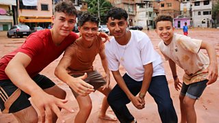 The boys' team and presenter Karim are in Brazil to learn the martial art capoeira.