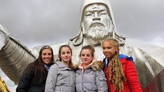 The girls' team and presenter Camille are in Mongolia learning the skills of nomads.