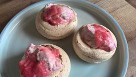 Coconut Meringues with New Season Rhubarb and Plum Cream