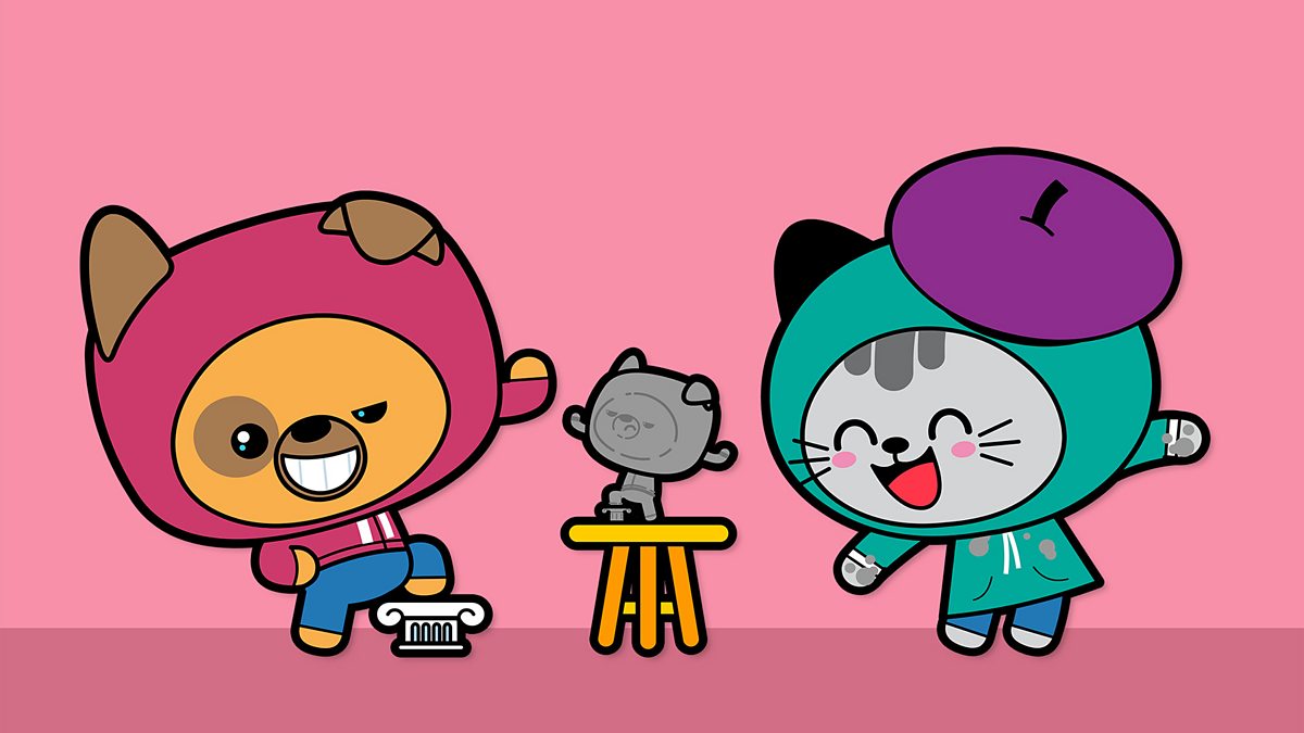 Let’s find out about clay with Kit and Pup. Kit is trying to make a clay model of Pup but he keeps changing his pose, which results in a squishy and squashy mess. When the clay starts to harden, Kit and Pup need to find an inventive use for their misshapen model. Through their adventures, Kit and Pup find out that clay can be squashed, made into things and that it goes hard when it dries. In the live action investigation, two little scientists use balls of clay to create pots and in the material world, a little explorer waves from the surface of a piece of clay.