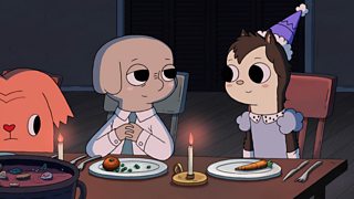 26/40A visit from Puddle the alien tests the limit of Oscar's hosting skills.