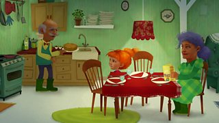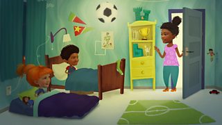 5/26Mum is going out and now dad has to put Huggleboo to bed.