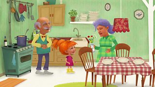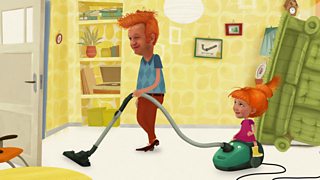 16/26Huggleboo’s mum and dad are cleaning the flat. Huggleboo has to tidy her room, too.