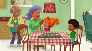 25/26Grandpa Moustache used to be a cook, that’s why Huggleboo has made a chef’s hat for him.