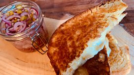 Grilled Cheese Sandwiches with Pickled Red Onions and Gherkins