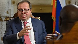 Clive Myrie interviews Andrei Kelin, Brandon Lewis MP and Anneliese Dodds MP.