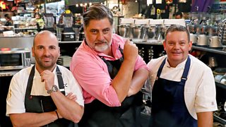 38/61It’s cook-off time as the contestants are split into two teams to provide a lunch service.