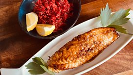 Whiskey Glazed, Teasmoked Monkfish with Spiced Beetroot Pilau