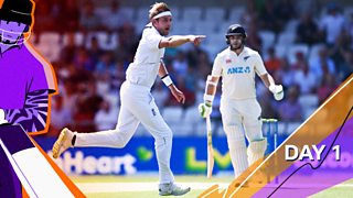 Highlights of the fourth day of the first test match between England and New Zealand.