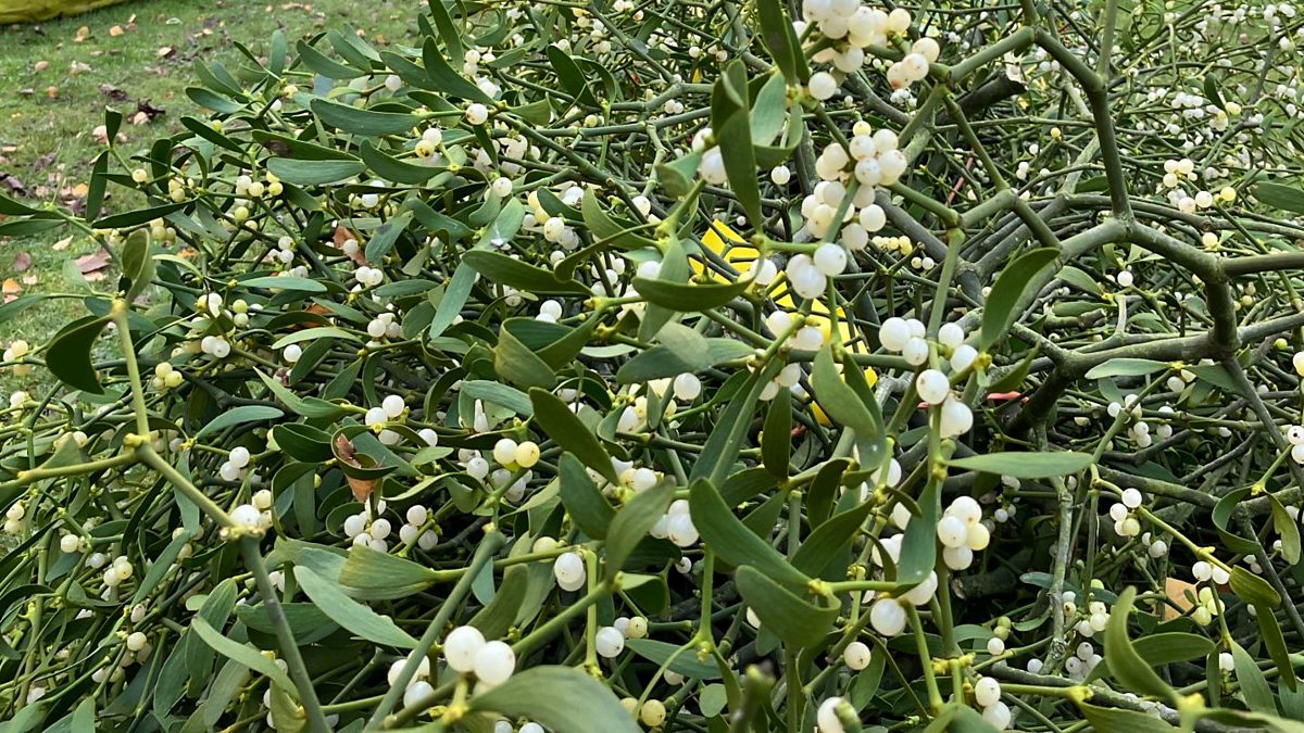 With its white berries and rounded drooping leaves, mistletoe is often used in our Christmas decorations - but where do those traditions come from? Caroline Evans visits the mistletoe auctions in Tenbury Wells in Worcestershire and an orchard in Gwent to hear how this distinctive plant is good for wildlife and how it has become steeped in our folklore and festive traditions.