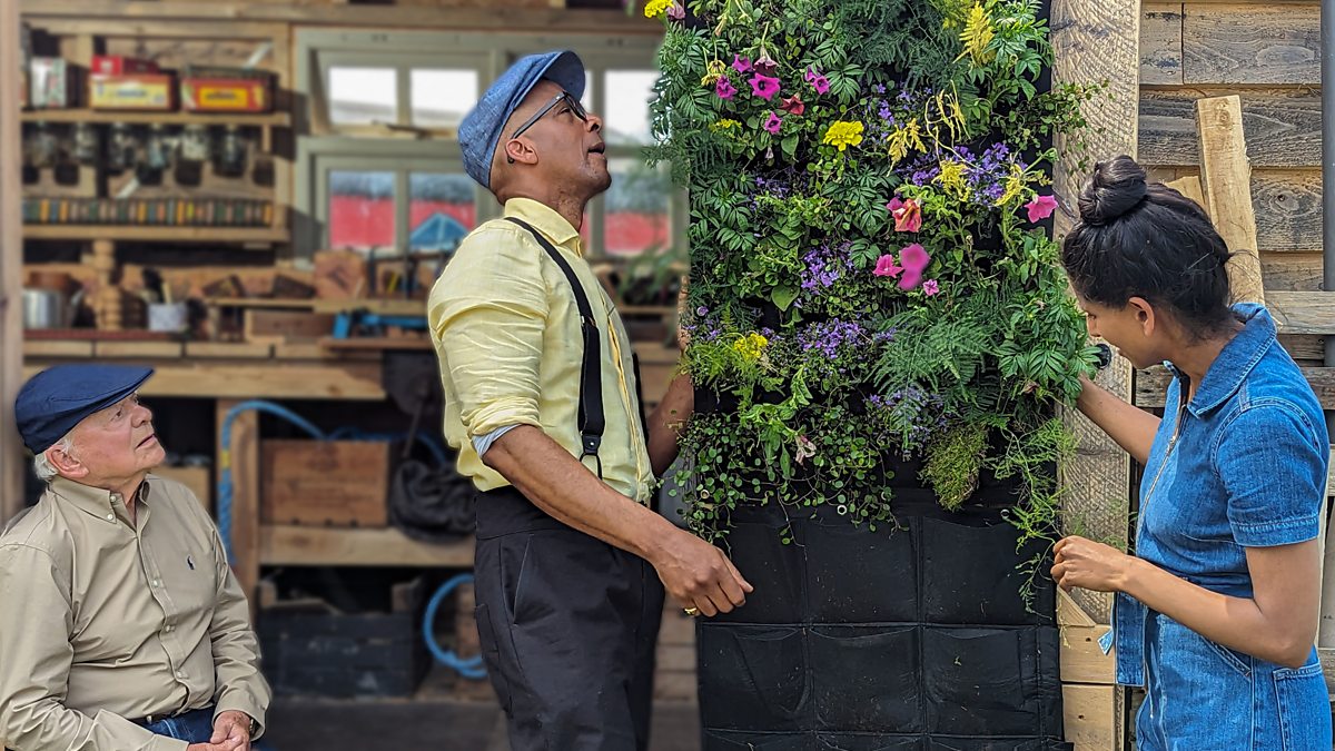 Meanwhile, David and Jay head over to their next guest, Shilpa, a floral designer who has come to teach David and Jay how to create a living wall on the side of the Toolshed. They talk about all the reasons why living walls are a great idea for those with limited outdoor space and have some useful tips and tricks.