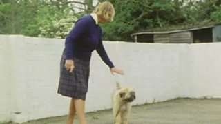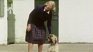 Barbara Woodhouse demonstrates an exercise where the dog is required to stop instantly.
