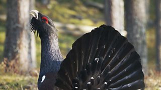 1/4The capercaillie’s story begins in the north as biologists capture wild animals in Sweden.