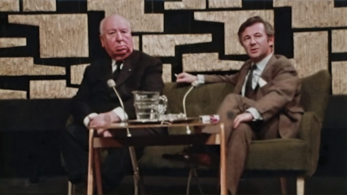 In his 70th year, Alfred Hitchcock came to the National Film Theatre in London to talk to fellow director Bryan Forbes and to answer questions from an audience of film enthusiasts.