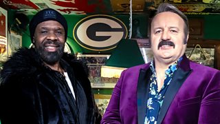 Mike Bubbins welcomes Glenn Webbe, a cult hero of Welsh rugby, to his bar.(R)
