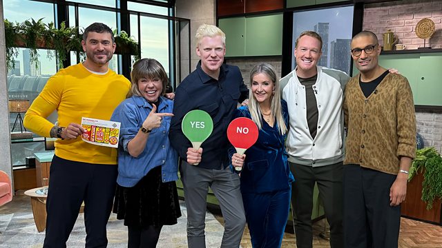 Rav Wilding and Helen Skelton continue Scam Safe Week with Rebecca Wilcox live in Kent, and Scam Interceptors’ Nick Stapleton on rising funeral livestream scams. Dr Oscar debunks cold-season myths, BBC Radio 2’s Richie Anderson warns of Christmas travel disruption, Briony May Williams cooks a one-pot pasta, and Strictly’s George and Alexis reflect on their journey.
